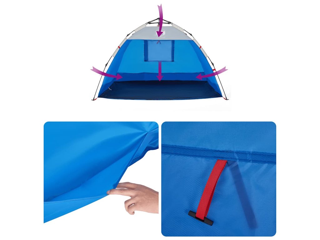 Plážový stan 2 osoby azurově modrý rychloupínací nepromokavý 4005296