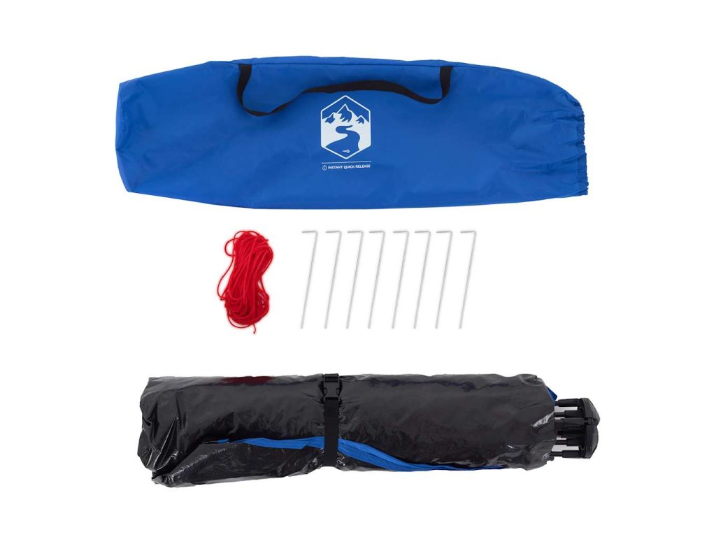 - Rychloupínací systém: Postavte stan snadno a bez námahy pomocí rychloupínacího systému! Stan položte na zem, roztáhněte předem sestavené tyče, dokud nezapadnou na své místo, a vše je hotovo!