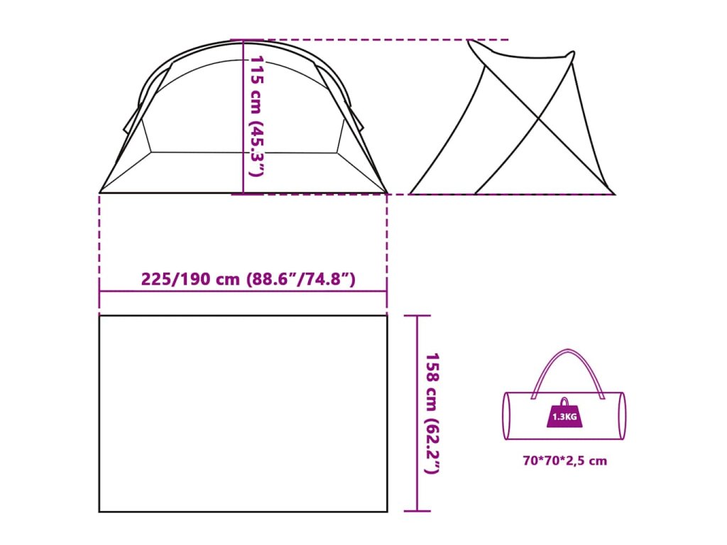 - Rozměry stanu: 225/190 x 158 x 115 cm (D x Š x V)