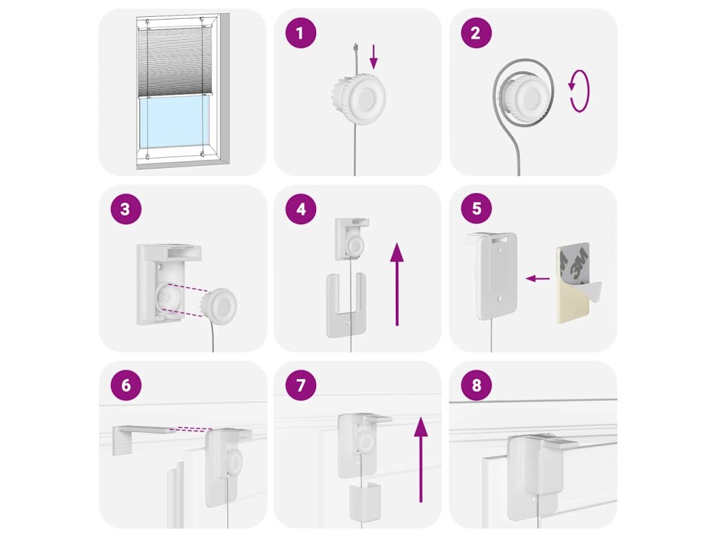 - Dva způsoby montáže: Podle potřeby můžete plisé připevnit ke stěně nebo oknu pomocí šroubů nebo bez vrtání pomocí upínacích konzol.