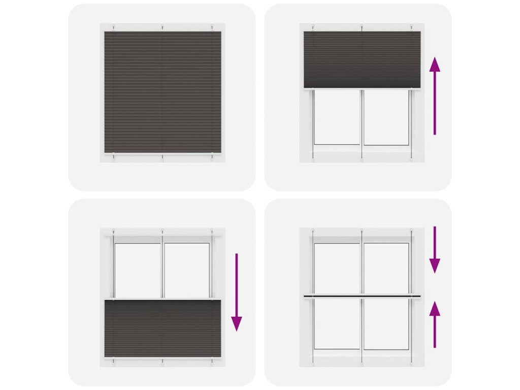- Soukromí a ochrana před sluncem: Žaluzie není průhledná, ale ani zcela zatemňující, a díky plisované tkanině poskytuje optimální soukromí a ochranu proti oslnění. Úroveň soukromí můžete nastavit jeho posunutím nahoru nebo dolů.