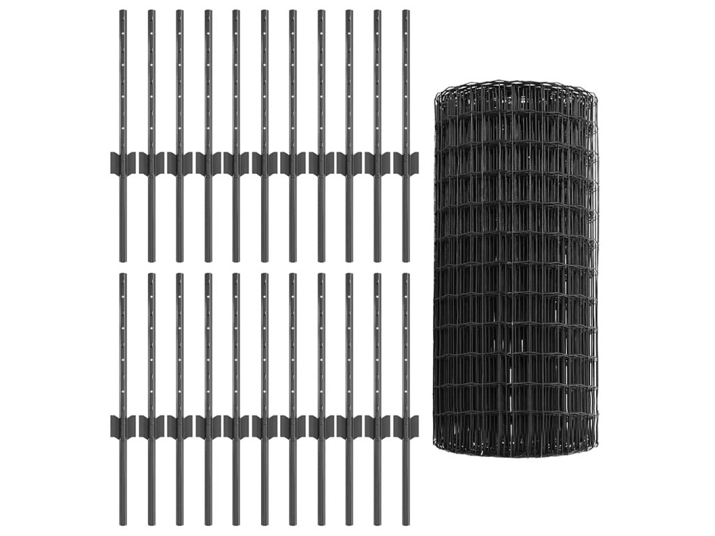 Plot s sloupkem Šedá 0,4 x 50 m Ocel a PVC 3336119