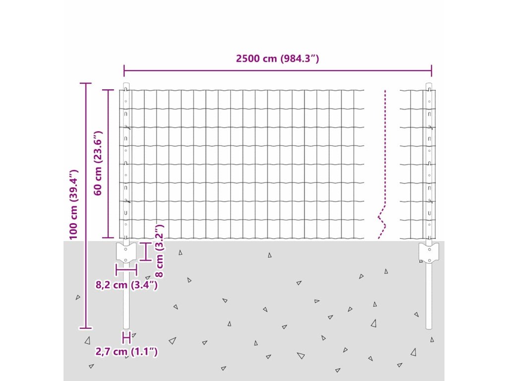 Plot s sloupkem Šedá 0,6 x 25 m Ocel a PVC 3336100