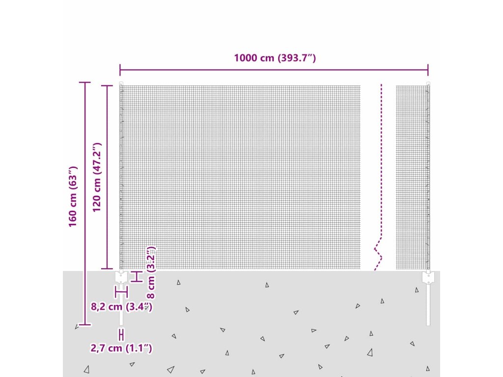 - Celkové rozměry: 1000 x 2,7 x 120 cm (D x Š x V)