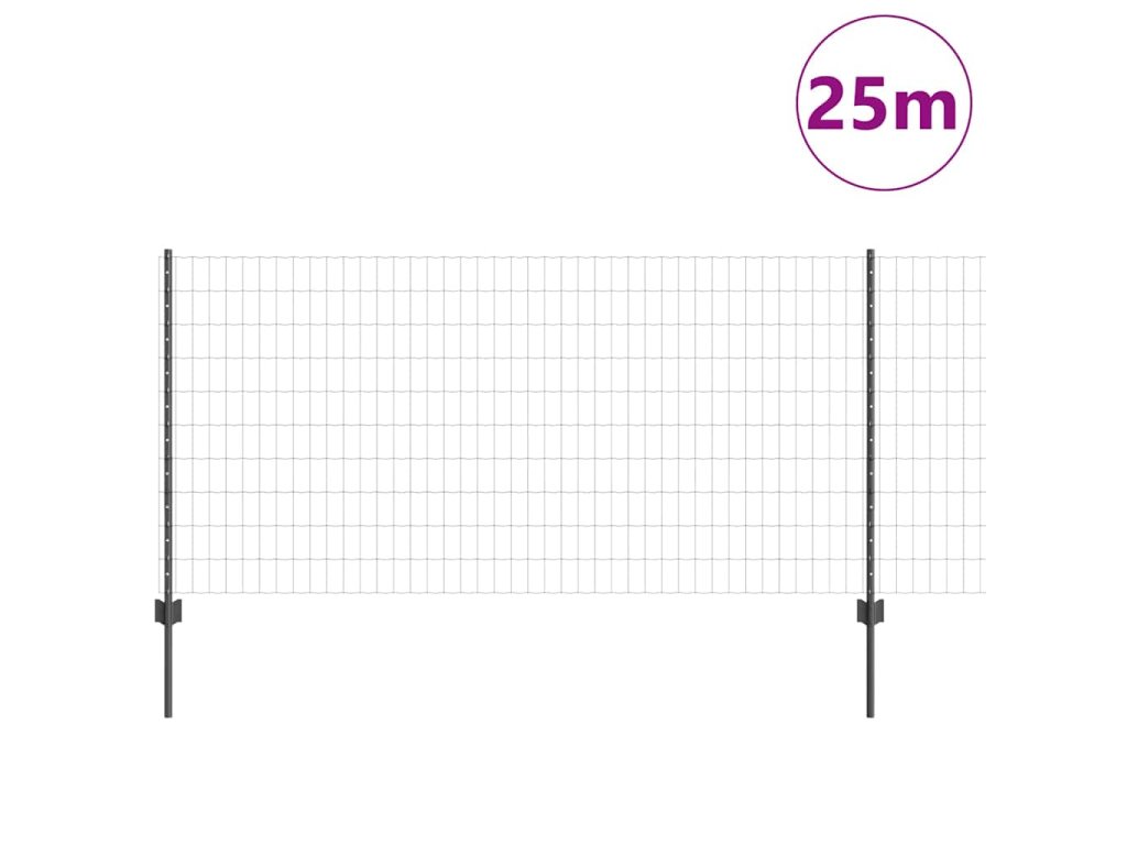 Plot s sloupkem Šedá 1 x 25 m Ocel a PVC 3336107