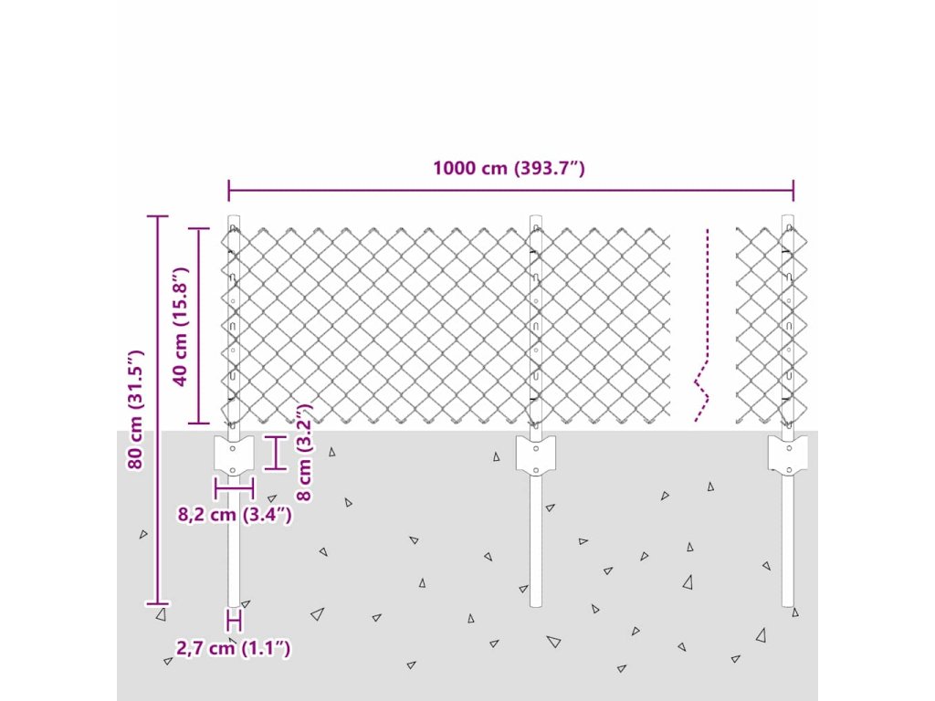 Plot s sloupkem Stříbrná 0,4 x 10 m Ocel 3336285