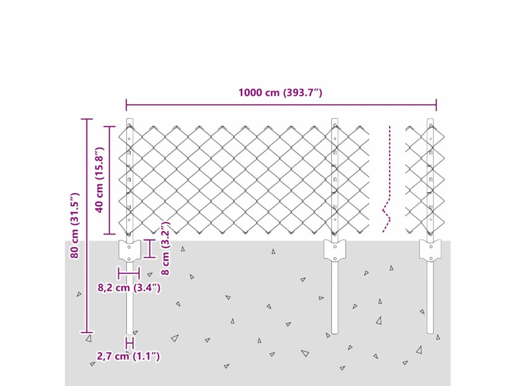 Plot s sloupkem Stříbrná 0,4 x 10 m Ocel 3336293