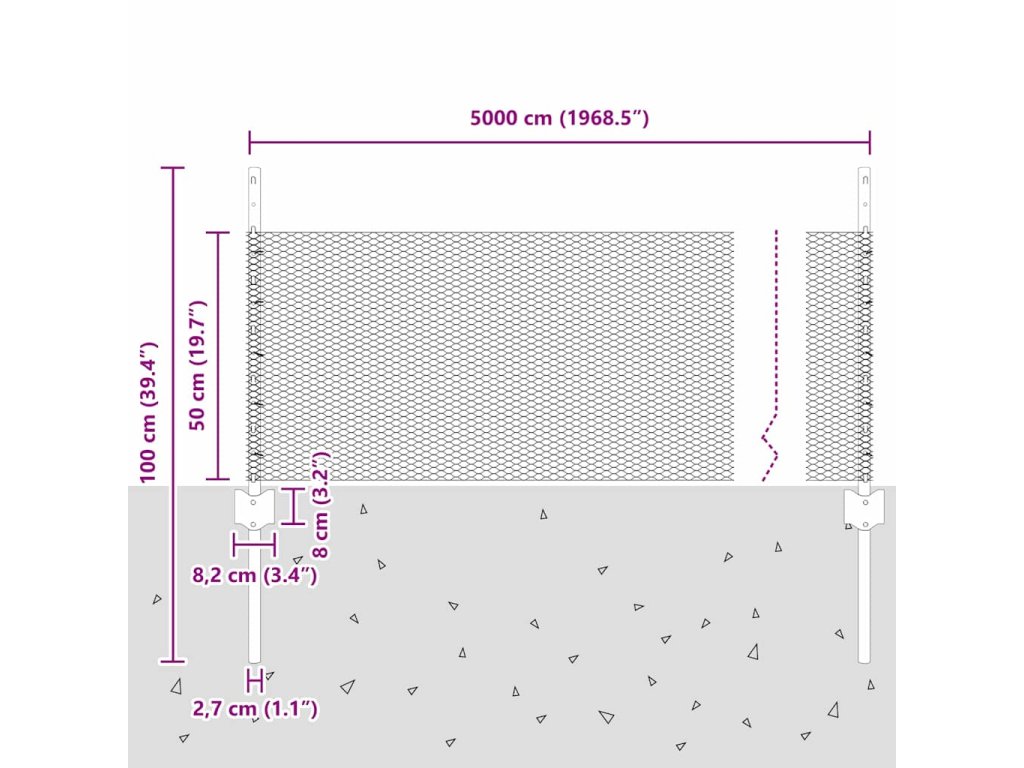 Plot s sloupkem Stříbrná 0,5 x 50 m Ocel 3337022