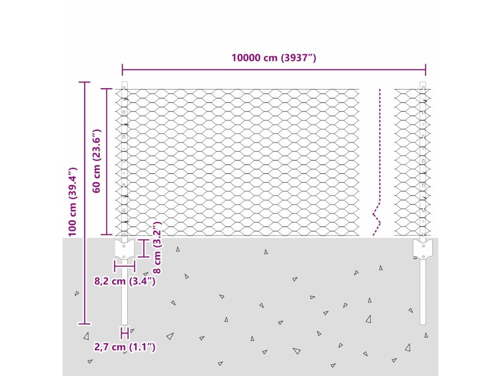 Plot s sloupkem Stříbrná 0,6 x 100 m Ocel 3337064