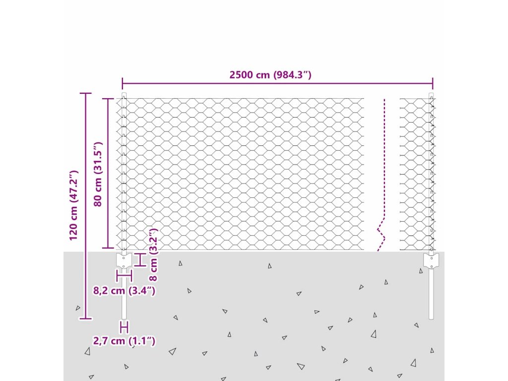 Plot s sloupkem Stříbrná 0,8 x 25 m Ocel 3336997