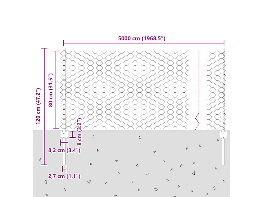Plot s sloupkem Stříbrná 0,8 x 50 m Ocel 3337033