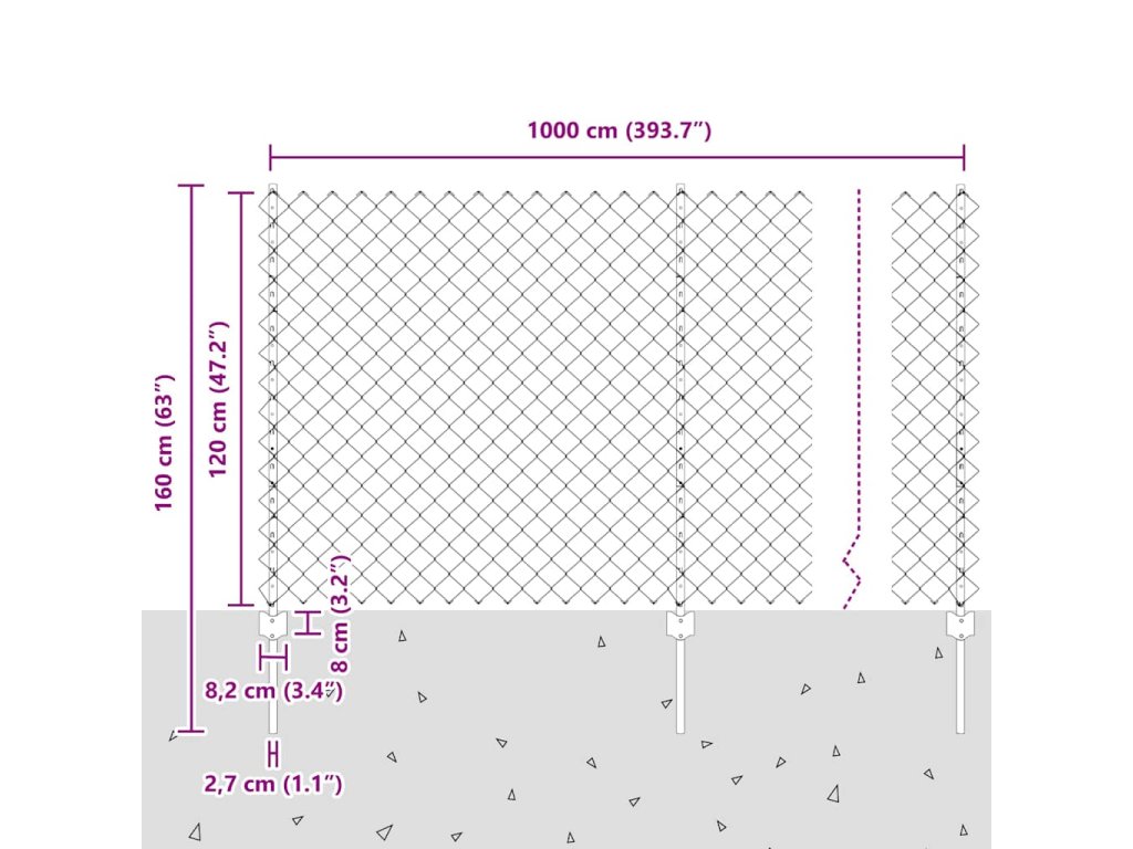Plot s sloupkem Stříbrná 1,2 x 10 m Ocel 3336297