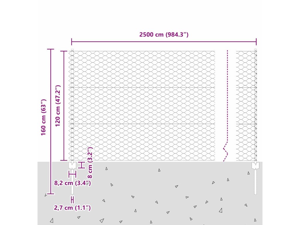 - Celkové rozměry: 2500 x 2,7 x 120 cm (D x Š x V)