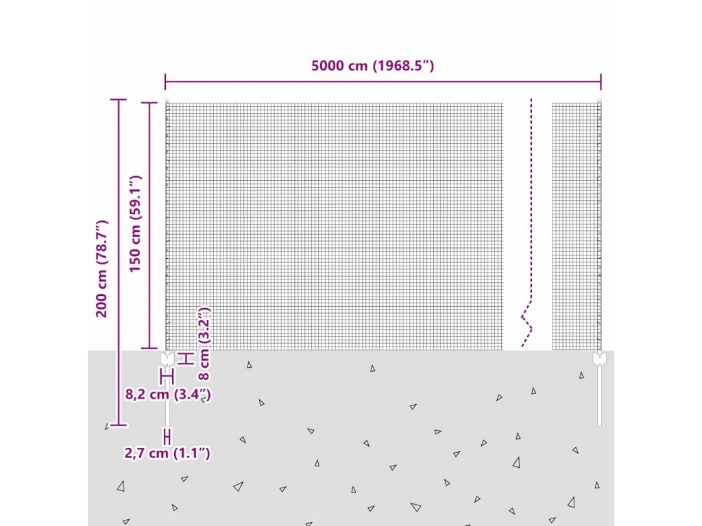 - Celkové rozměry: 5000 x 2,7 x 150 cm (D x Š x V)