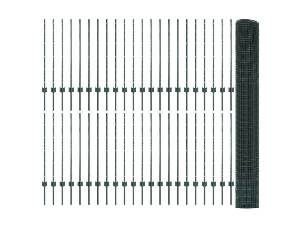 Plot s sloupkem Zelená 1 x 100 m Ocel a PVC 3336544