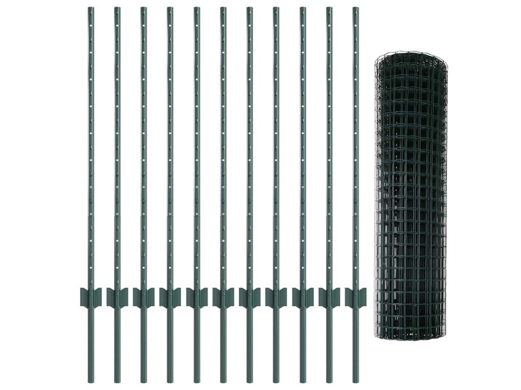 Plot s sloupkem Zelená 1 x 25 m Ocel a PVC 3336007