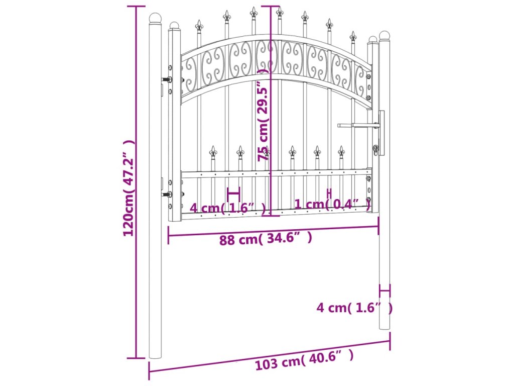 - Konstrukce s vysokým stupněm zabezpečení: Branka poskytuje vysoký stupeň zabezpečení díky elegantní klenuté horní konstrukci a silným vodorovným výztuhám, které zpevňují rám a zároveň vytvářejí úžasný vstup na váš pozemek.