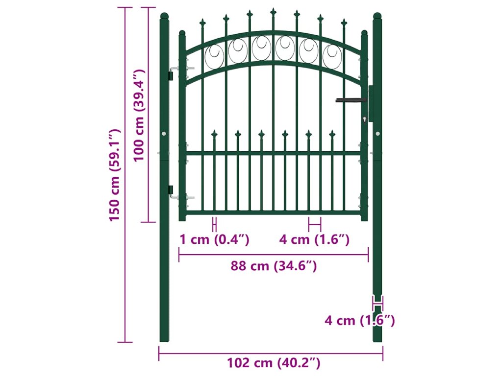 Plotová branka je vyrobená z vysoce odolné oceli, má robustní konstrukci s práškovým nástřikem proti rzi a korozi. Zahradní branka je vybavená vertikálním pruty zakončenými hroty a silnou vodorovnou výztuží, takže vám poskytne vysoký stupeň zabezpečení. Klenutý design jí dodává na eleganci. Součástí balení jsou dva pevné sloupky s robustními závěsy pro snadnou instalaci a také zámek se třemi klíči.