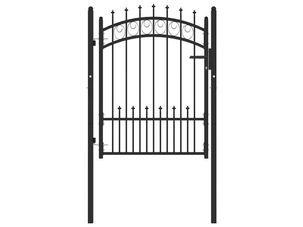 Plotová branka je vyrobená z vysoce odolné oceli, má robustní konstrukci s práškovým nástřikem proti rzi a korozi. Zahradní branka je vybavená vertikálním pruty zakončenými hroty a silnou vodorovnou výztuží, takže vám poskytne vysoký stupeň zabezpečení. Klenutý design jí dodává na eleganci. Součástí balení jsou dva pevné sloupky s robustními závěsy pro snadnou instalaci a také zámek se třemi klíči.