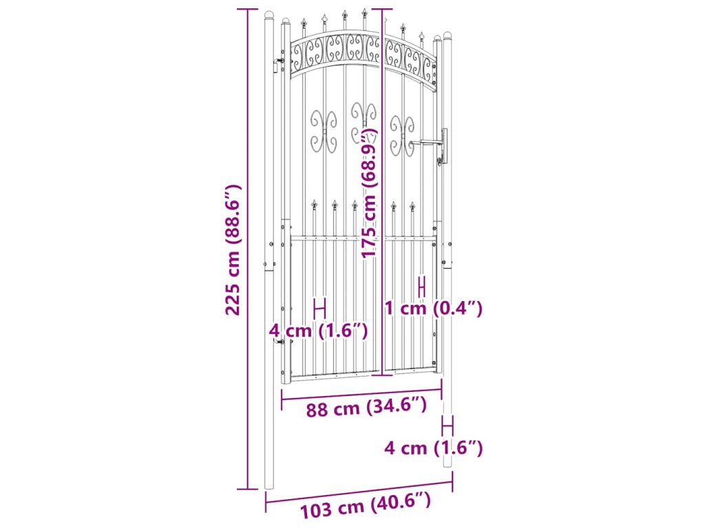 Plotová branka s kopím nahoře černá 103 x 175 cm, práškově lakovaná ocel 151093