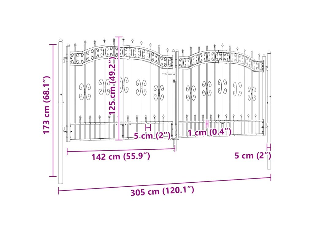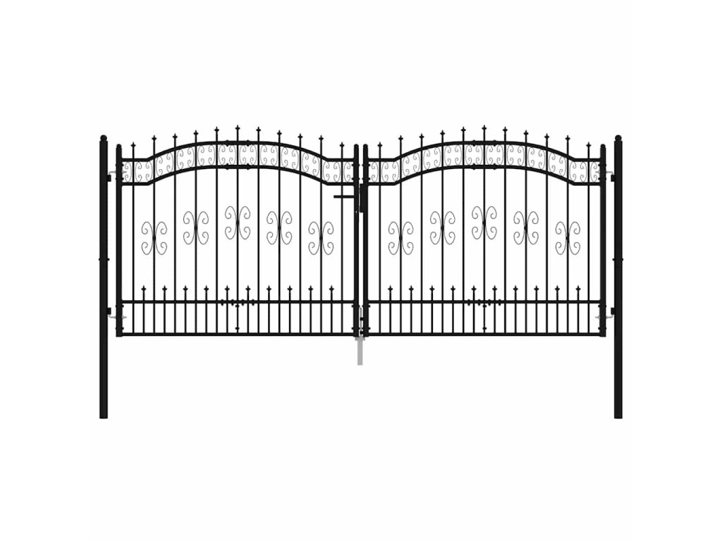 Plotová branka s kopím nahoře černá 305 x 125 cm, práškově lakovaná ocel 151096