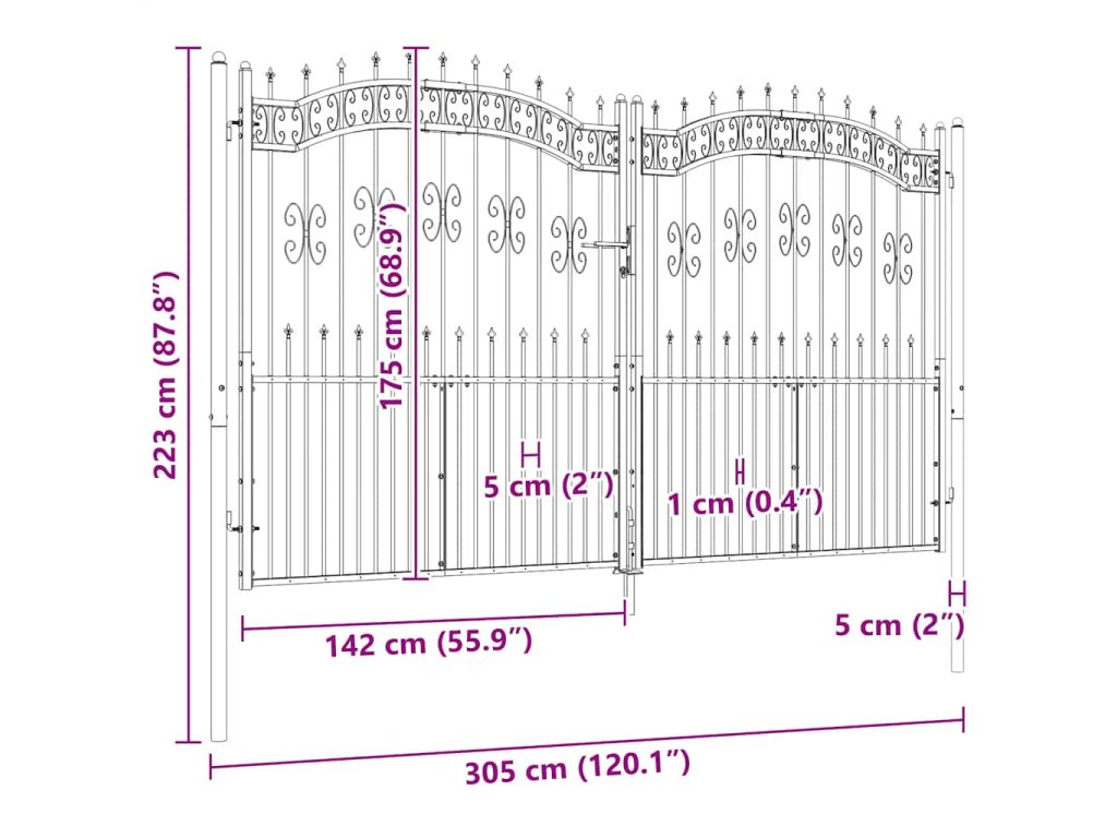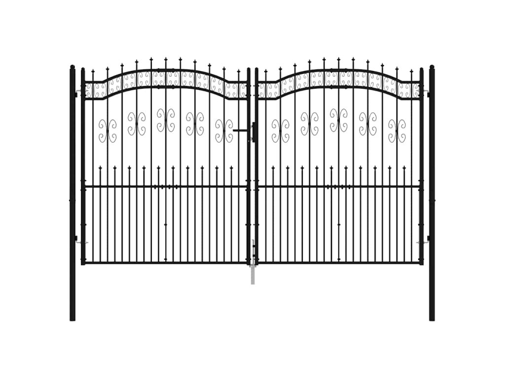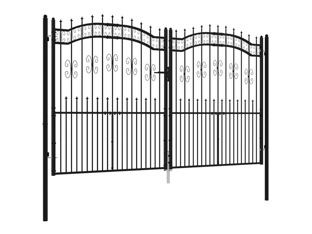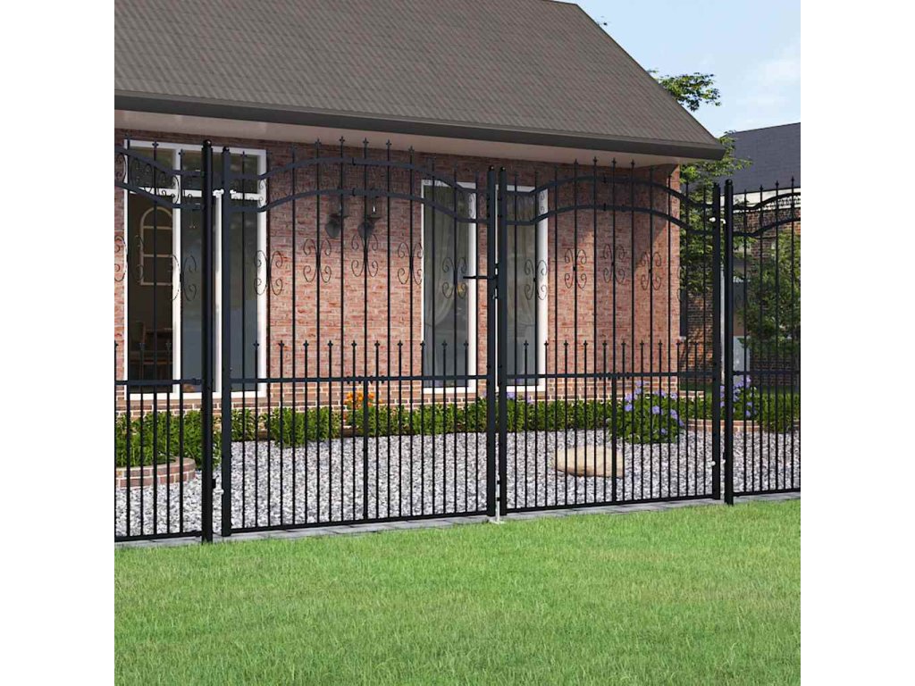 Plotová branka s kopím nahoře černá 305 x 175 cm, práškově lakovaná ocel 151098