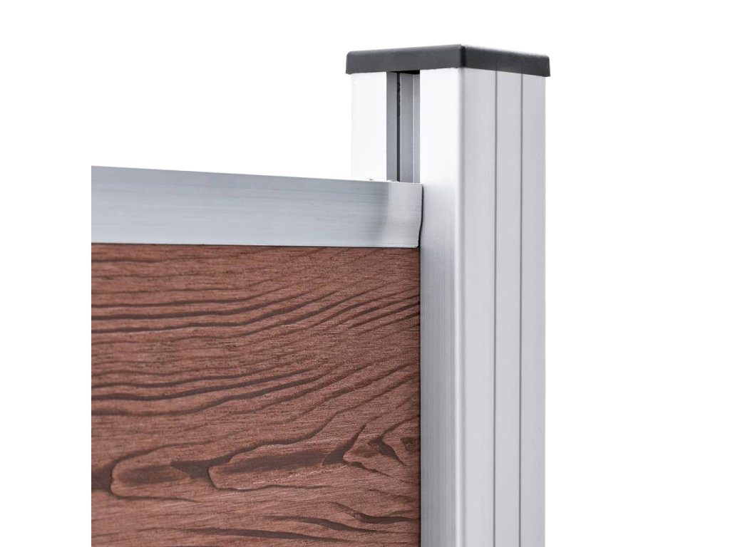 - Materiál: WPC (dřevoplast), hliník, ocel