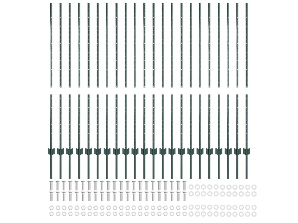 Plotový sloupek. 22 pcs Zelená 180 cm Ocel 3335922
