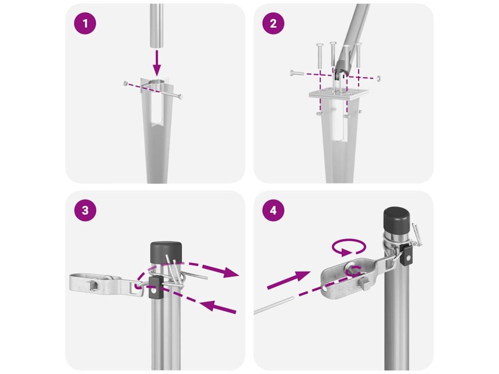 - Přiložené komponenty: Montáž sloupku je jednoduchá, protože potřebujete minimální počet dílů. Stačí přesně vyrobené komponenty a kladivo, abyste sloupek zasadili do země. Skvěle se spojí s bránami a ploty, a poskytuje stabilitu a funkčnost.