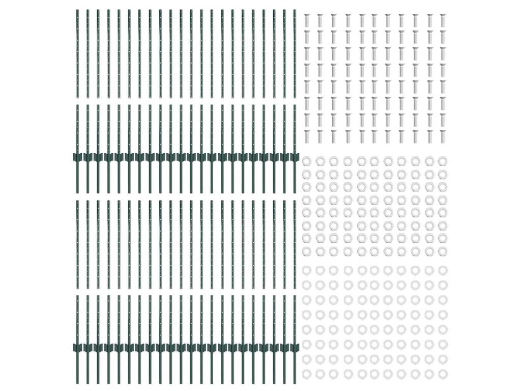 Plotový sloupek. 44 pcs Zelená 140 cm Ocel 3335919
