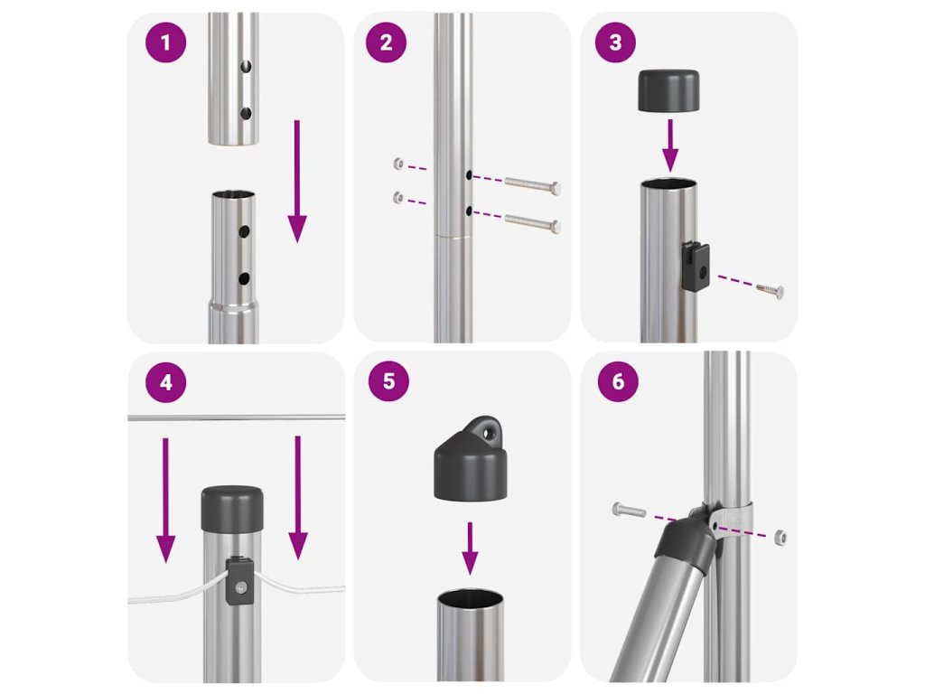 - Pozinkovaná ocelová konstrukce: Každý sloupek je z oceli, takže je pevný a vhodný do venkovního prostředí. Pozinkovaný povrch prodlužuje životnost a pomáhá udržet skvělý stav i při změnách počasí.