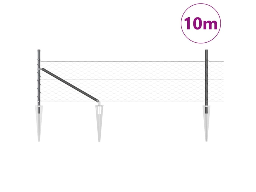 Plotový sloupek. Šedá 10 x 0,4 m (50 mm síťovina) Ocel a PVC 3353186