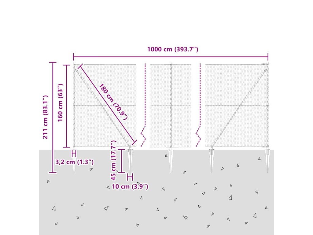 Plotový sloupek. Šedá 10 x 1,6 m (25 mm síť) Ocel a PVC 3353216