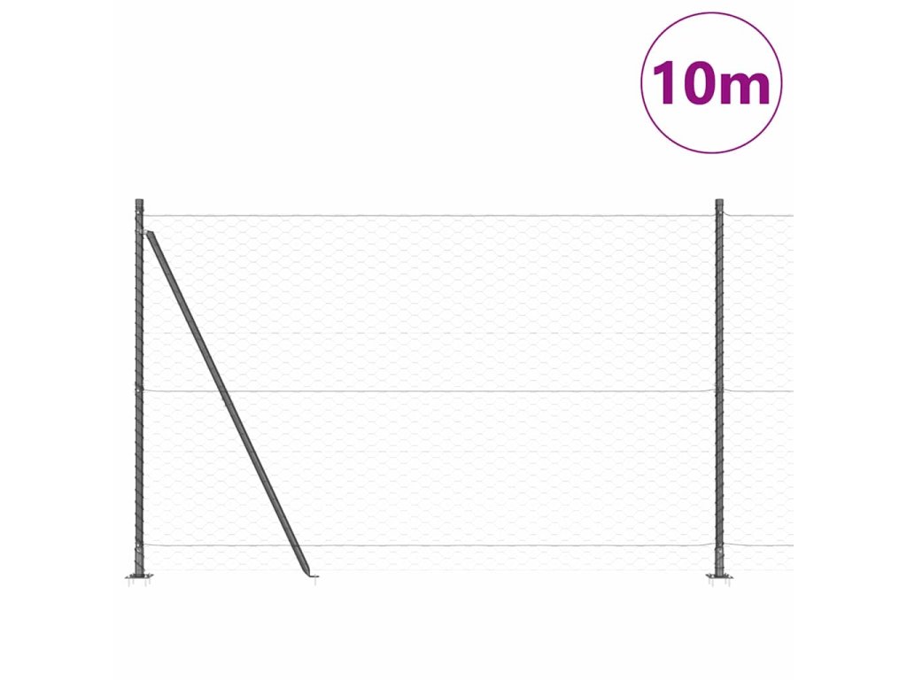Plotový sloupek. Šedá 10 x 1,6 m (50 mm síť) Ocel a PVC 3353640