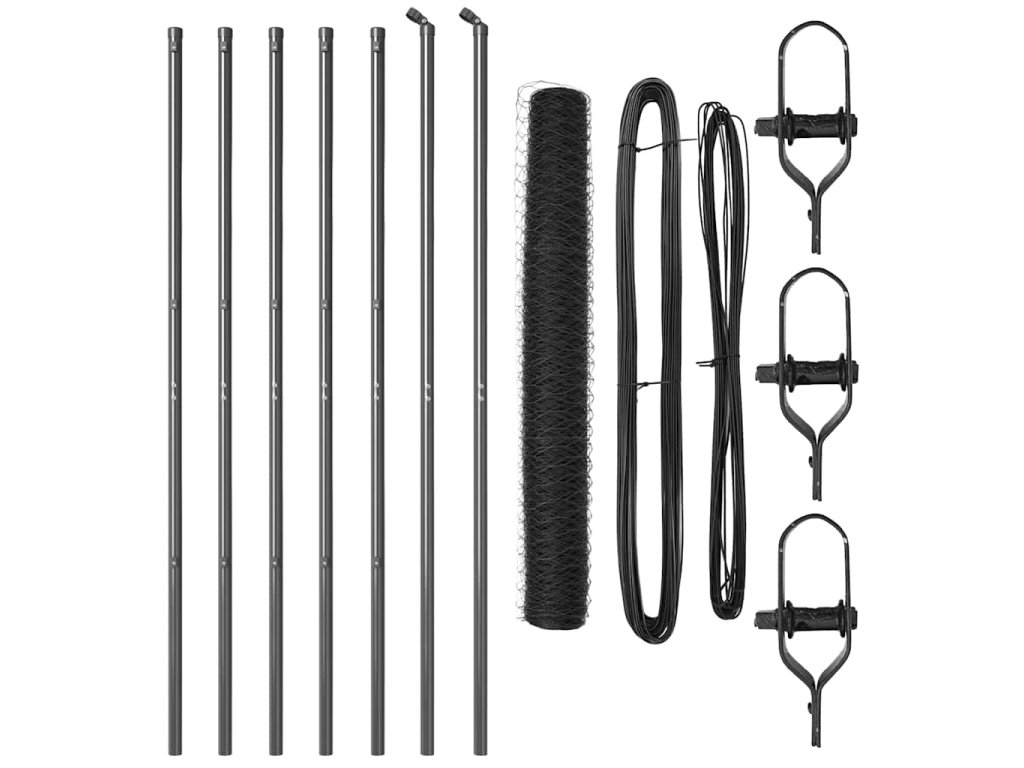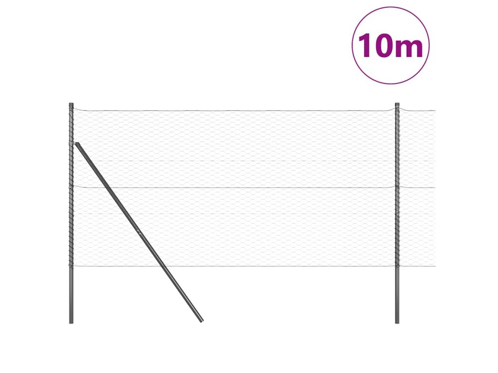 Plotový sloupek. Šedá 10 x 1 m (36 mm síť) Ocel a PVC 3352779