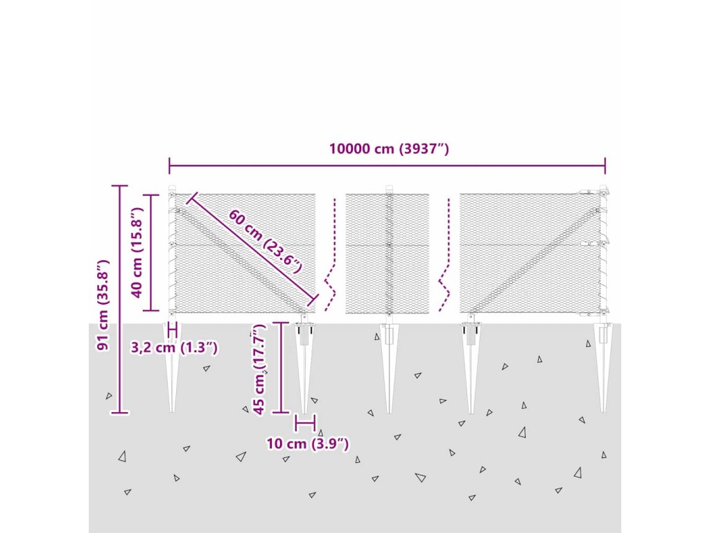 Plotový sloupek. Šedá 100 x 0,4 m (13 mm síť) Ocel a PVC 3353291