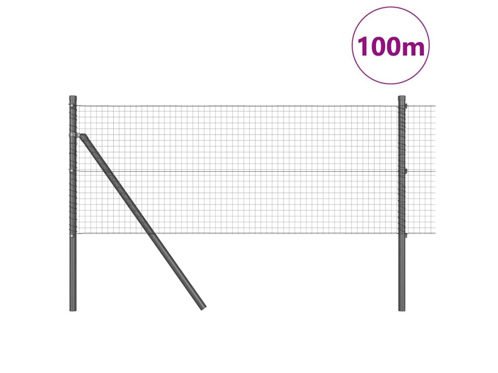 Plotový sloupek. Šedá 100 x 0,5 m (25 x 25 mm síť) Ocel a PVC 3351899