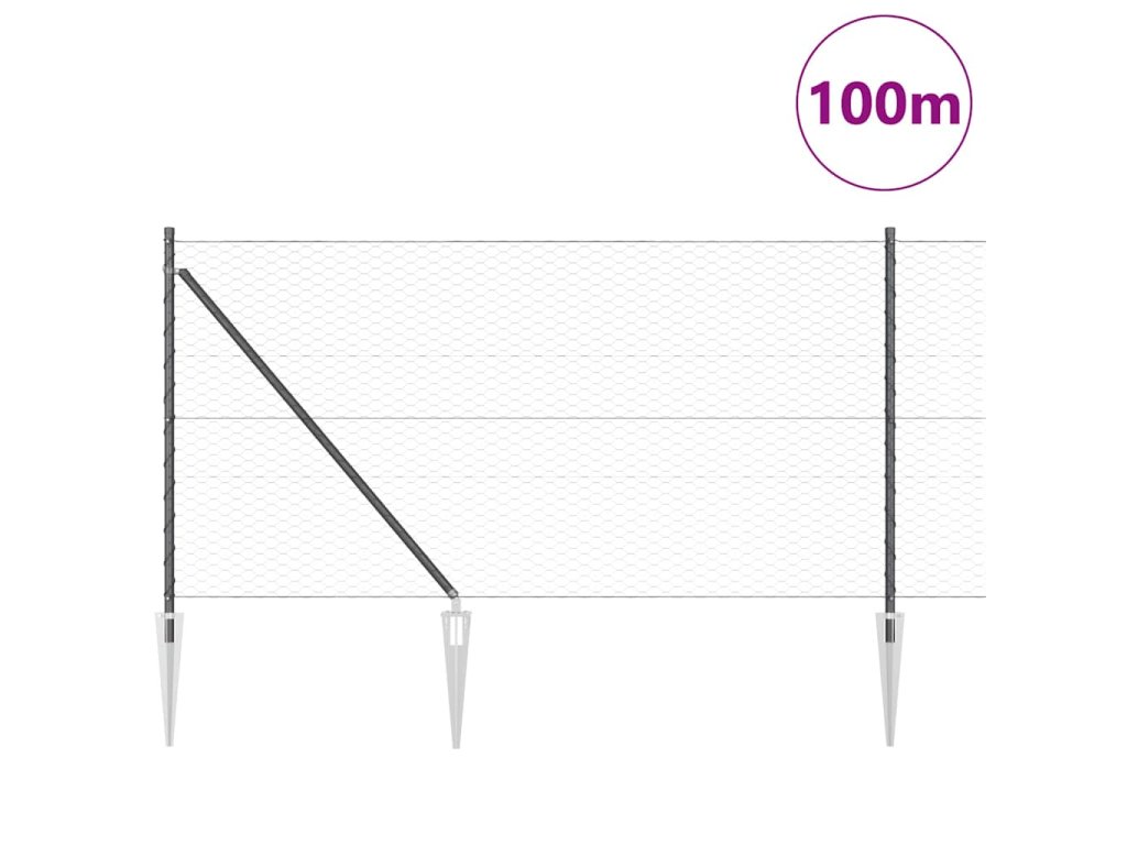 Plotový sloupek. Šedá 100 x 1 m (36 mm síťovina) Ocel a PVC 3353309
