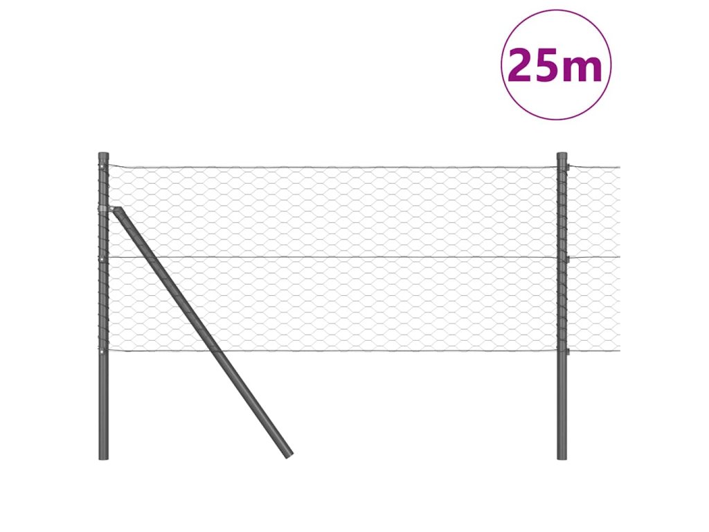 Plotový sloupek. Šedá 25 x 0,6 m (36 mm síť) Ocel a PVC 3352807
