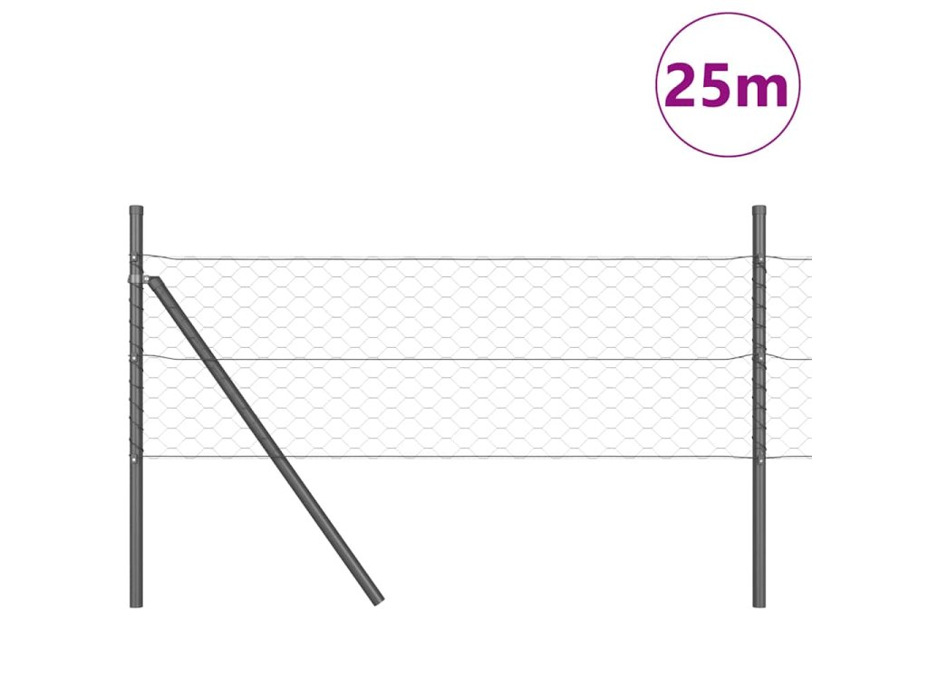 Plotový sloupek. Šedá 25 x 0,8 m (50 mm síť) Ocel a PVC 3352812