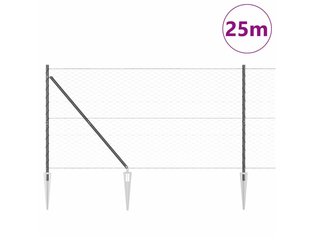 Plotový sloupek. Šedá 25 x 1,4 m (50 mm pletivo) Ocel a PVC 3353246