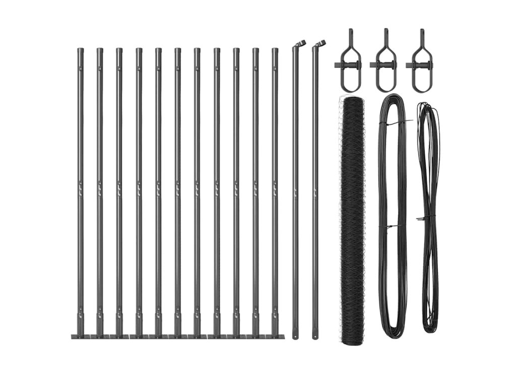 Plotový sloupek. Šedá 25 x 1,4 m (50 mm pletivo) Ocel a PVC 3353668