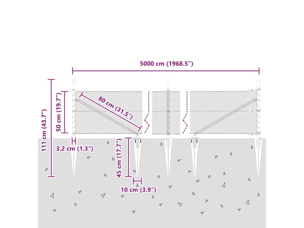 Plotový sloupek. Šedá 50 x 0,5 m (13 mm síť) Ocel a PVC 3353259