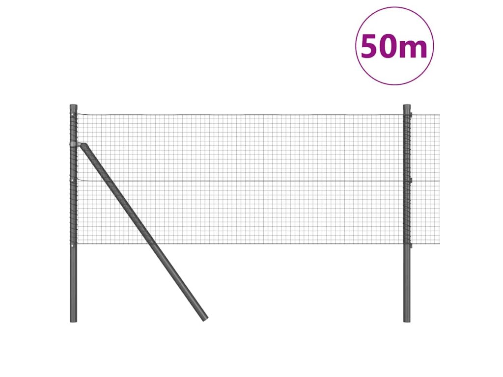 Plotový sloupek. Šedá 50 x 0,5 m (19 x 19 mm síťka) Ocel a PVC 3351868