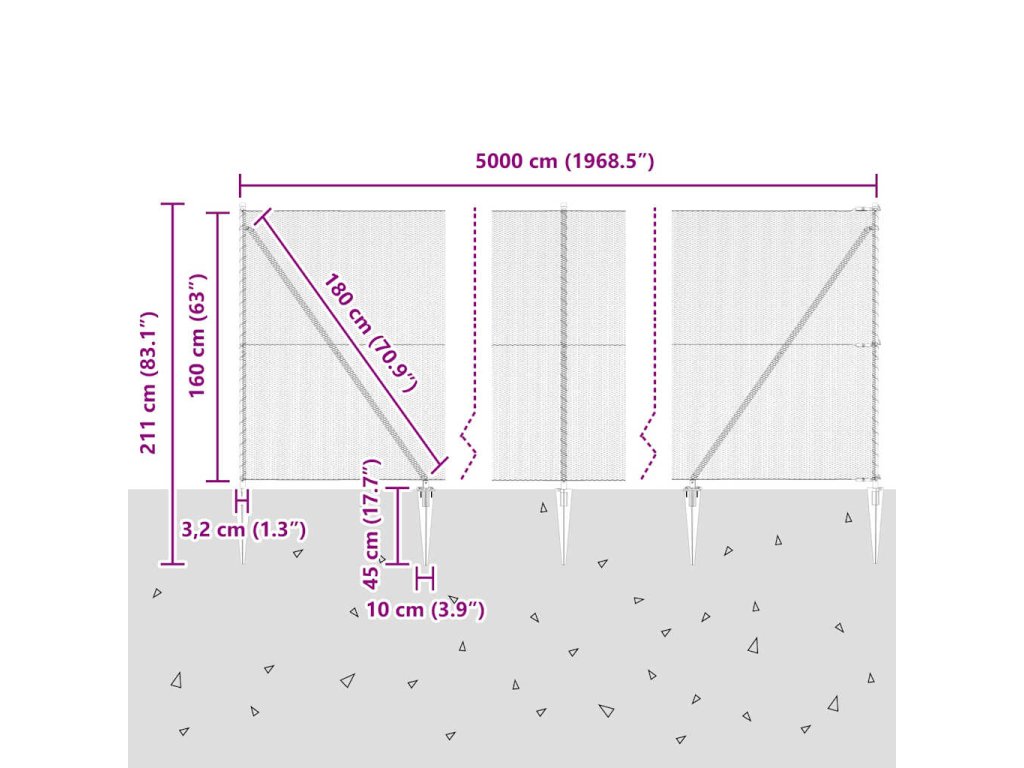 Plotový sloupek. Šedá 50 x 1,6 m (13 mm síť) Ocel a PVC 3353287
