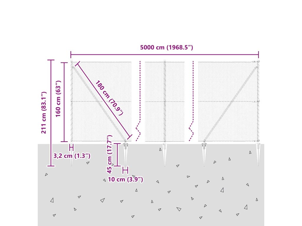 Plotový sloupek. Šedá 50 x 1,6 m (25 mm síť) Ocel a PVC 3353288