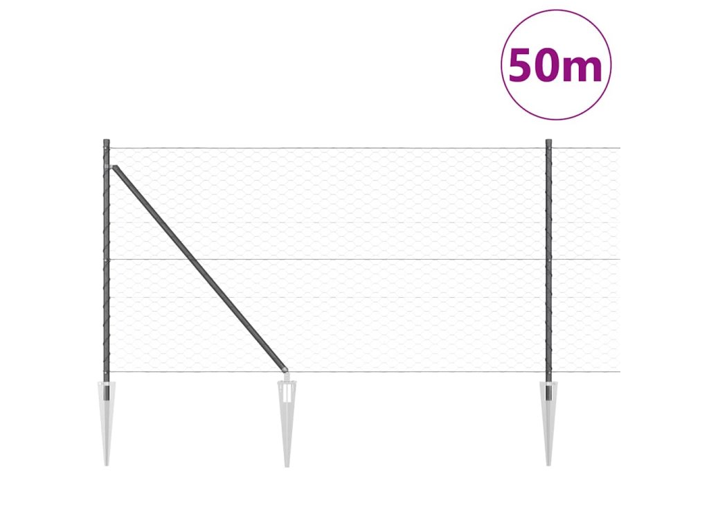 Plotový sloupek. Šedá 50 x 1 m (50 mm síť) Ocel a PVC 3353274