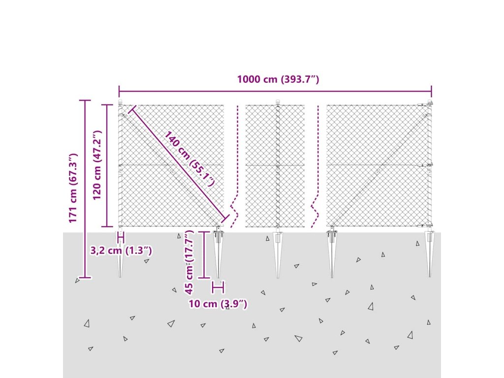 Plotový sloupek. Stříbrná 10 x 1,2 m (síť 40 x 40 mm) Ocel 3351206