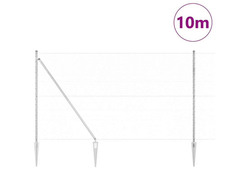 Plotový sloupek. Stříbrná 10 x 1,6 m (50 mm síť) Ocel 3353359