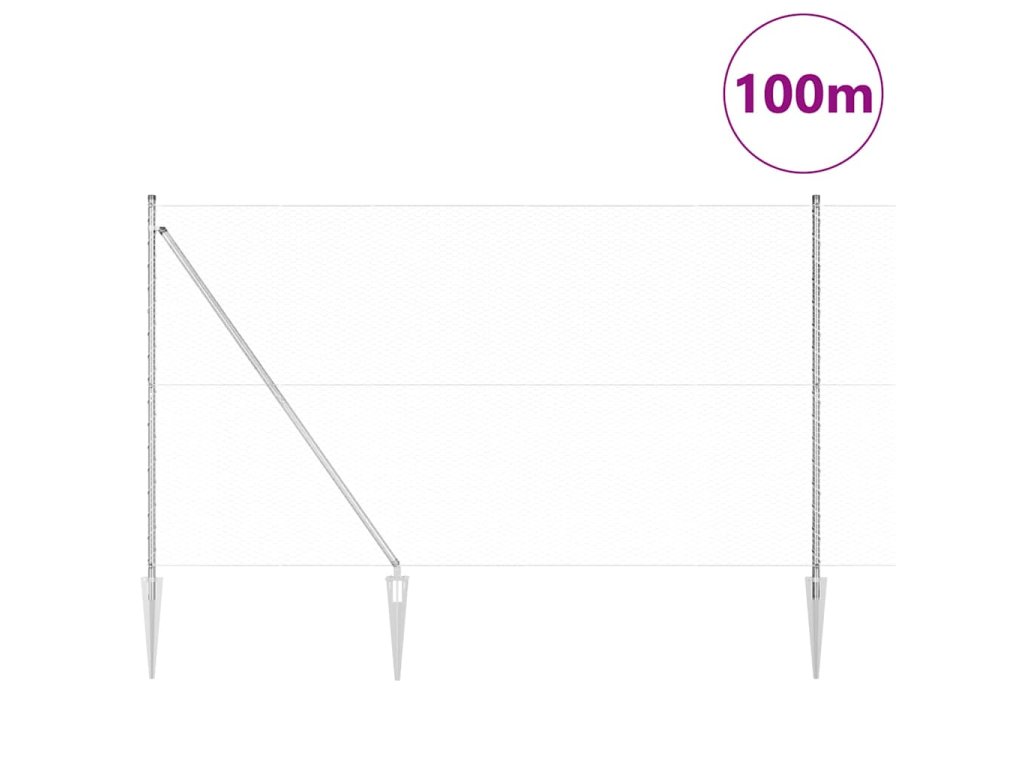 Plotový sloupek. Stříbrná 100 x 1,6 m (25 mm síť) Ocel 3353461
